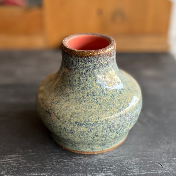 Hand Thrown Ceramic Peacock Rutile and Pink Vase.