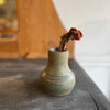 Small rustic hand thrown ceramic bud vase. This vase features our home made blue, green and grey wood ash glaze with a gloss white liner and a smooth, unglazed lip. It is about 4 inches high, has approximately a 1.75" mouth and is 3.5 inches at its widest. Made by us here in the Catskills region.