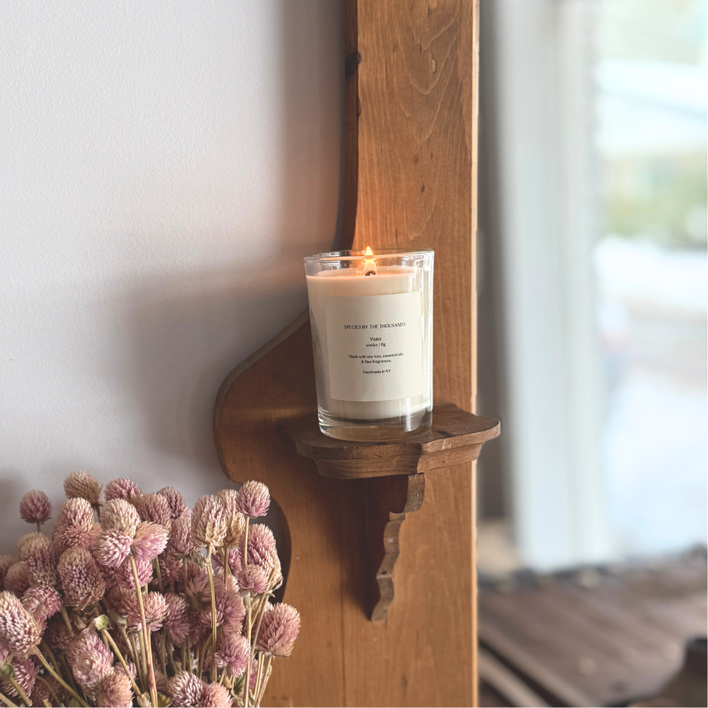 Our hand-poured Violet, Smoke + Fig candle is a warm, slightly smoky blend with notes of tonka and clove.